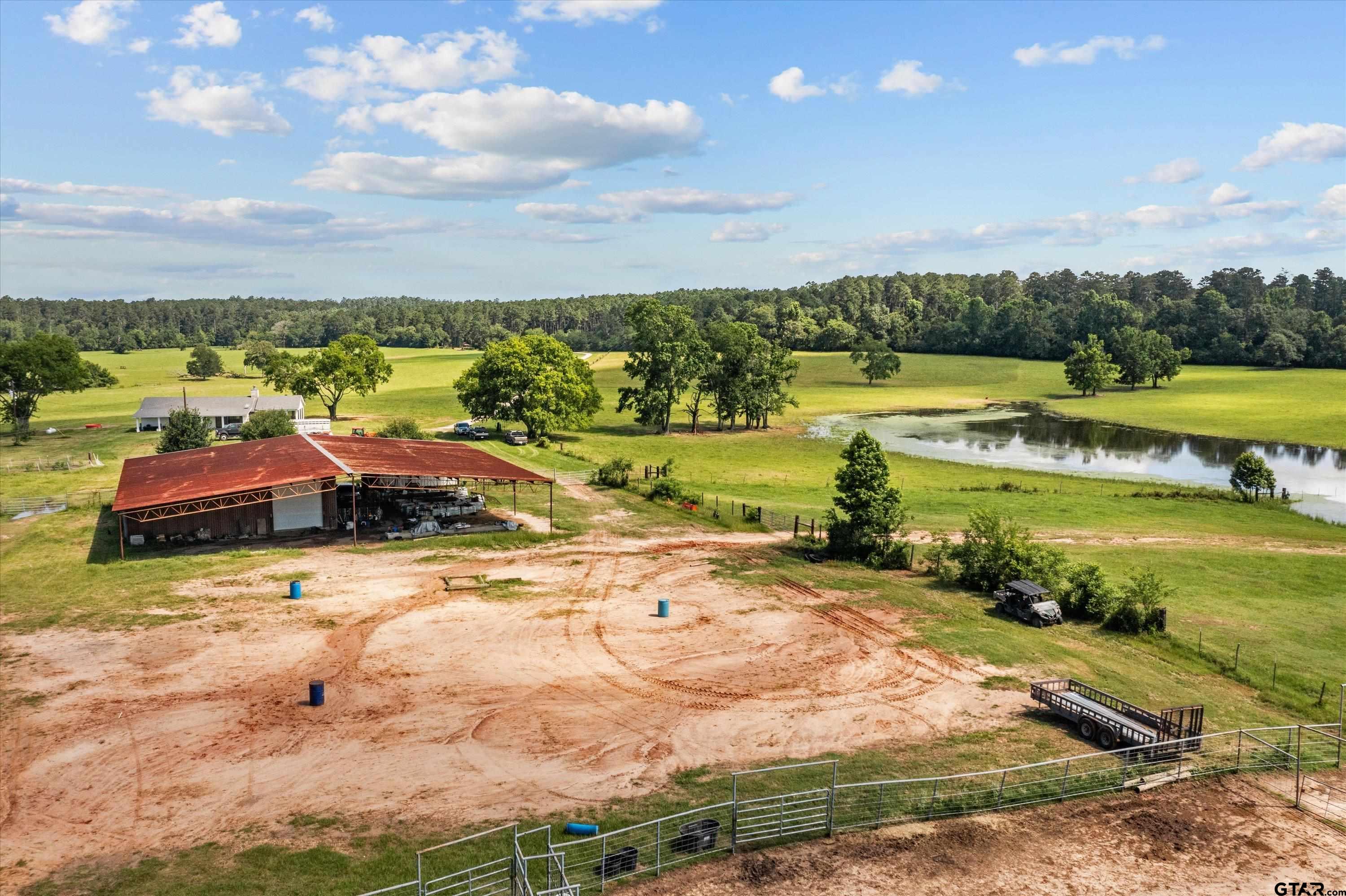 | 665.252-ACRE RANCH – EXCELLENT CATTLE OPERATION! This property provides an incredible opportunity to own 665.252 expansive acres in the Hopewell Community, nestled between Crockett and Lovelady. This large tract gives you all the privacy you could ever want being bordered on three sides by the Davy Crockett National Forest and the south east corner bordered by White Rock Creek. This ranch offers lush pastures – fenced and cross fenced into 15 different pastures and hay fields, ideal for rotational grazing and great hay production. There are 14 lakes and ponds scattered throughout the property, with the largest lake being 16-acres and stocked with bass and brim, offering excellent fishing! In addition to great fishing, the owner reports great hunting – deer, hogs, and duck! Regenerative ranching practices have been employed for several years to promote soil health and increase forage production resulting in a return of native grass species and a burgeoning bird population. Centrally located on the ranch, you will find a nice-ranch style home – perfect for your ranch foreman or weekend getaway. The home is getting a new roof, and features welcoming porches, a sunroom, open living, kitchen, and dining area, and two spacious bedrooms and bathrooms. The large 90’x95’ barn provides excellent feed, hay, and equipment storage. There is also a set of cattle working pens. If you’re looking to start or expand your existing cattle operation, this is the property for you! Properties like this do not come available every often, so don’t miss your opportunity, call today to schedule a private tour! **Listing agent must be present at all showings.** | |