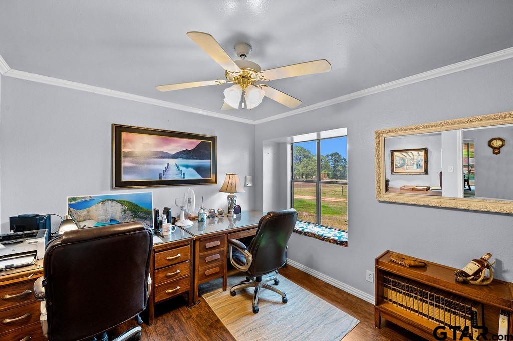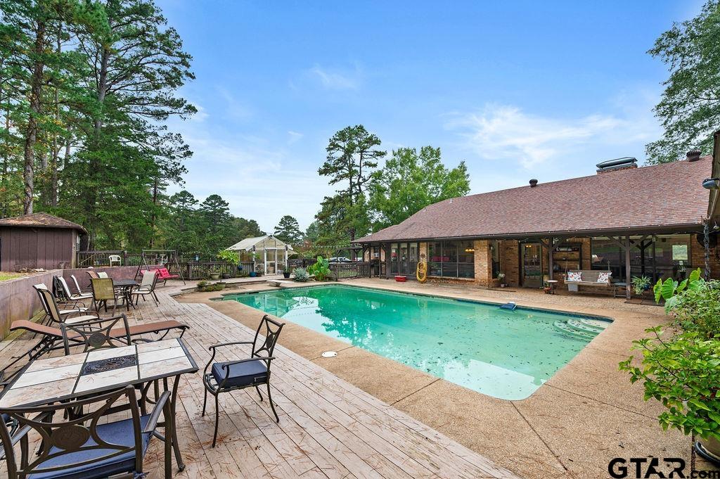 | Situated on 50 acres, this property offers the good country living that Lindale is known for. Set back off the county road just 3.5 miles from downtown, the land features a mix of open pasture, mature woods, and a live spring-fed creek—well-suited for cattle, horses, hay production, or simply enjoying rural life. The brick home offers approximately 3,500 square feet with 4 bedrooms and 3 bathrooms. The layout includes two flexible spaces: the original fifth bedroom currently used as an office near the kitchen, and a converted two-car garage that now serves as an office with built-ins. The primary suite has space for a sitting area, and the ensuite bathroom includes dual vanities, a walk-in shower, and separate closets. Additional features of the home include a formal dining room, sunroom, laundry area with utility sink, covered front and back porches, and a spacious vaulted living room anchored by a floor-to-ceiling Old Chicago brick fireplace. A 20x40 in-ground gunite pool runs along the back of the home, surrounded by an expansive deck area that connects to a pool shed (with a working toilet) and an adjacent greenhouse. The property also includes a 5-stall horse barn with tack room (water & electricity), plus a second multi-use building (electricity only), offering a shop workspace, ample storage, and an insulated office/storage area. Partially remodeled, the home needs some updates, giving the next owner the opportunity to renovate and design it to their own style. With acreage this close to town and solid infrastructure already in place, bring your boat, camper, ATV, and animals to begin living the life you’ve been longing for. | |