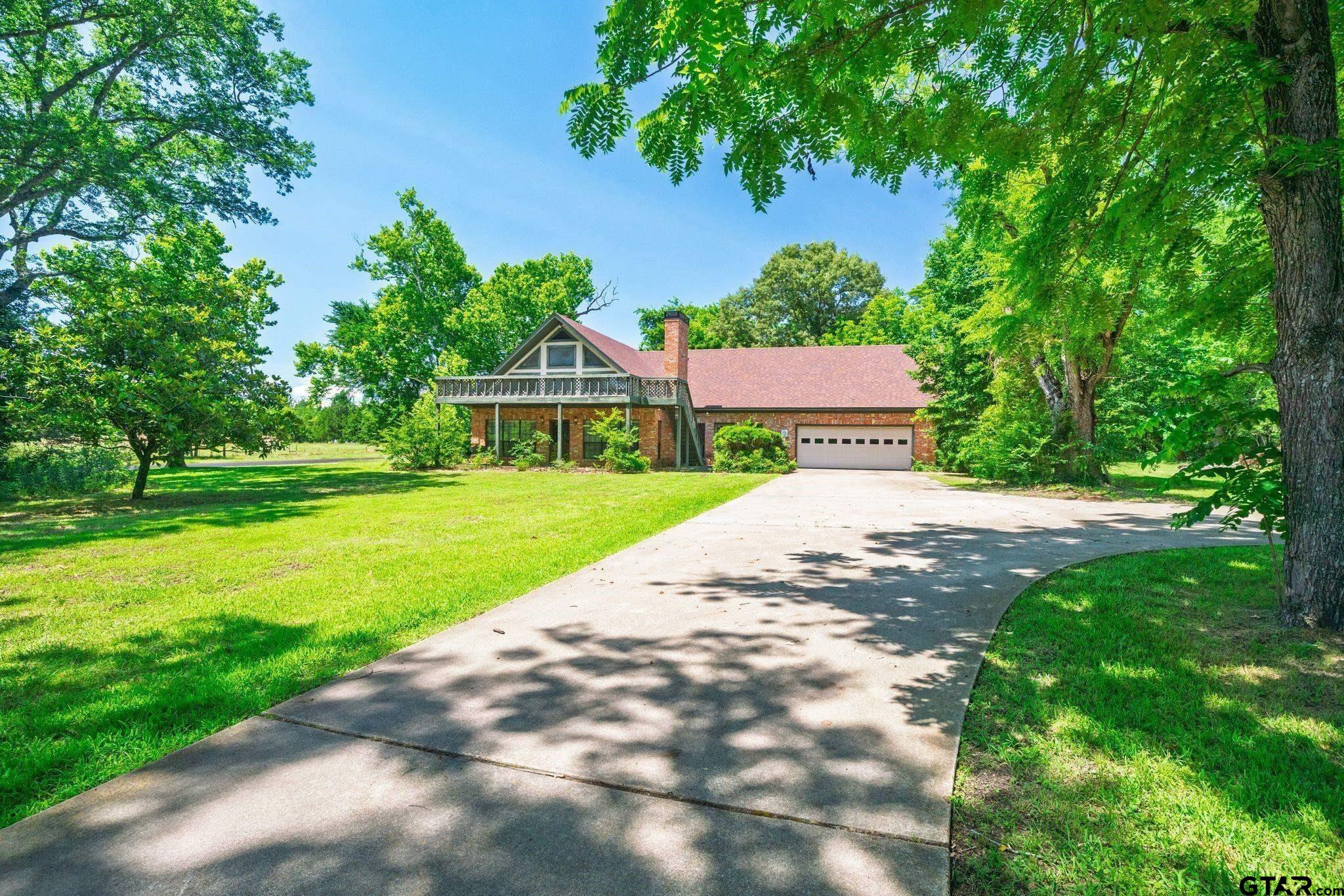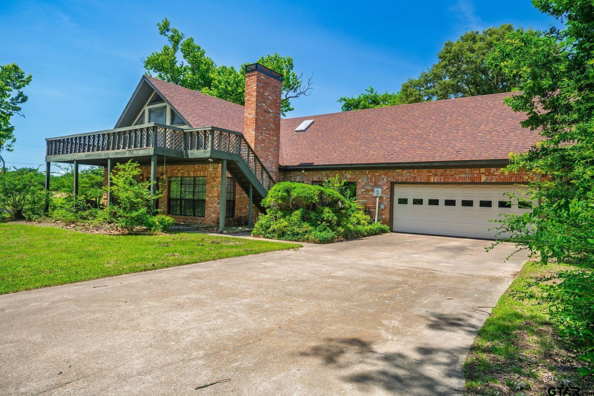 | Check out this brick chalet-style home with character and charm on a mostly wooded 12.8 acres with AG-exemption in Southern Hopkins County! A concrete drive to them main house allows easy access to this delightful property. Inside the main house, a 20x20 great room features brick paver flooring, cathedral ceilings, a nice built-in bookcase, brick fireplace, and tons of windows. A second 16x28 living room, with brick paver flooring, could be converted into a third bedroom. An open floor plan provides an easy flow from dining room to the great room. The kitchen includes lots of cabinet storage, a cooktop stove, and double wall oven. Downstairs is the large 14x19 primary ensuite with double sinks, garden tub, 2 separate walk-in closets, and separate shower. Guests also have access to a half-bath downstairs. Upstairs, you'll find a loft, 2nd bedroom with a walk-in closet, and full bathroom. Enjoy a bird's eye view from the 2nd story front deck, accessed from outside. Additional bonuses are high-grade wood panel walls in both living areas and dining room, covered front porch with swing, 2-car attached garage, and storage shed. A smaller house, currently with a tenant, also comes with this property. For more acreage, next door in a separate living, you'll also find 36.9 acres with small ranch house that you can keep as a rental or use it for hosting family or guests. Retreat to this quiet country setting with a private yard and enchanting outdoor space! | |